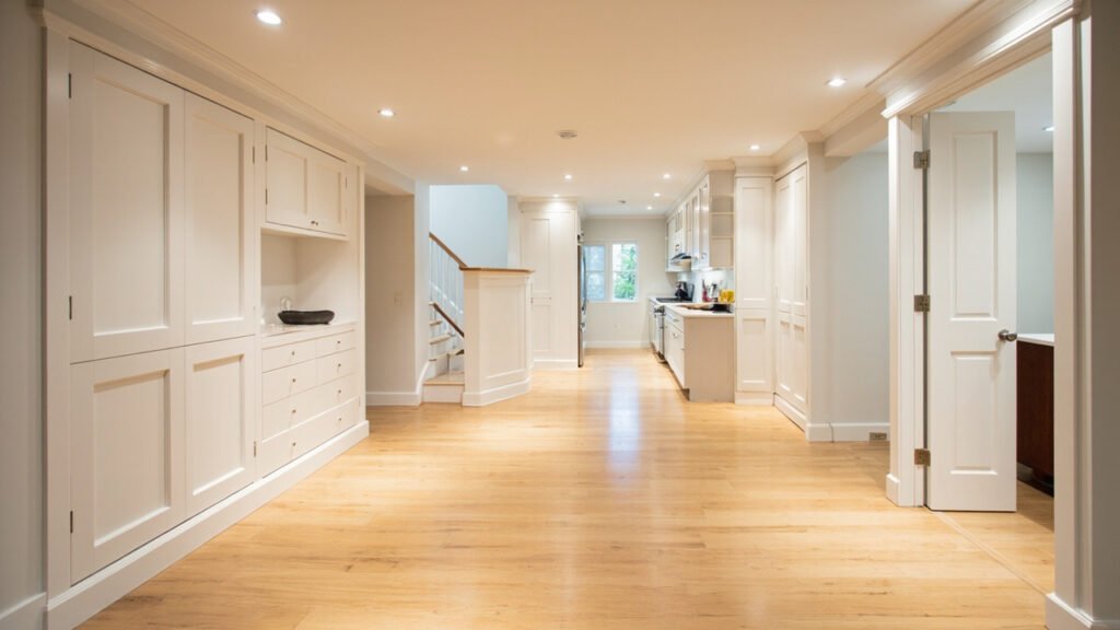 • Surface materials chosen for durability in below-grade environments, including moisture-resistant drywall and luxury vinyl plank or tile flooring
